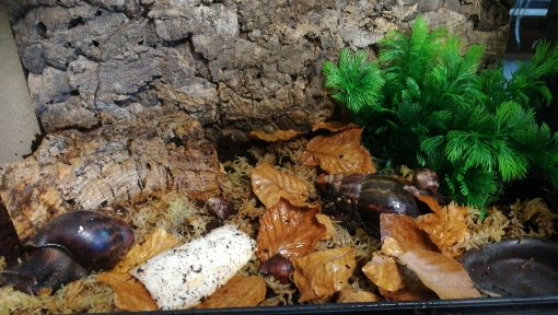 für mich sehen die Schnecken eindeutig nach Achatina fulica in Wildfarben aus. Gehäuse und vor allen Dingen der Körper spricht eindeutig dafür.
