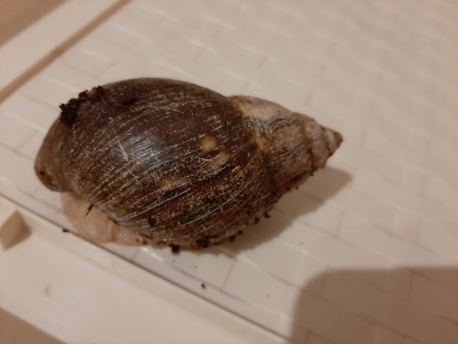 Eine der Schnecken konnte ich als Fulica VA erkennen und 3 weitere zweifelsfrei als extrem schlecht gewachsene , kruschelige Reticulata zuordnen. Doch dann kam folgende Schnecke: