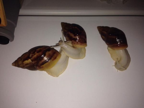 So ihr Lieben, ich wollte noch ein letztes Update mit Fotos von den Dreien machen und euch gleichzeitig für die Ratschläge und die Hilfe danken! Ich bin so erleichtert, dass es ihnen jetzt endlich gut geht, sie fressen gut (dabei sind sie auch deutlich weniger wählerisch als vorher, sondern stürzen sich auf alles) und sind viel aktiver. Zwischenzeitlich hat mir die Haltung überhaupt keinen Spaß mehr gemacht, weil ich mir nur noch Sorgen gemacht habe, aber jetzt könnte ich stundenlang vor dem Terra stehen - die "Großen" sind sogar aktiver als meine Weinbergschnecken und besonders nachts ist es faszinierend, wenn die weißen Körper im Halbdunkel fast zu leuchten scheinen.