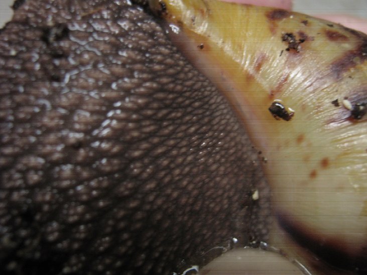 ich bin seit einiger Zeit bezüglich meiner m. marginata am Grübeln....es wird beschrieben, dass die Columella weiß/bläulich-weiß ist. Bei all meinen margis ist die Columella jedoch nicht weiß (weder bei den Jungtieren von der Börse, bei denen es sich später rausstellte, dass es auch Nachzuchten von Konni sind, der Händler hatte sie fälschlicherweise als eigene NZ angeboten, noch bei den Größeren, die ich vor kurzem von Konni bekommen hab). Bei allen ist die Columella eher leicht apricot mit einem Stich ins lachsfarbene. Also hab ich heute morgen Fotos gemacht und sie an Andreas Leiß geschickt. Hier erstmal das Foto der Columella einer Börsen-margi (die Columella sieht bei allen sechs Tieren so aus):