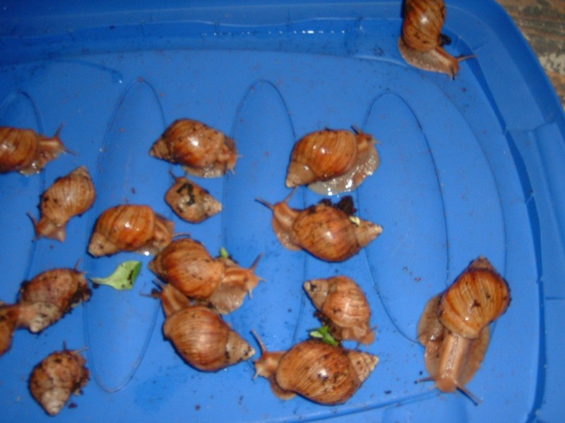 Ich bin grade im Internet über ein paar sehr hübsche Schnecken gestolpert. Sie waren als Achatina Achatina benannt, was ja nicht sein kann. Die Verkäuferin habe ich darauf angesprochen und sie hat mir die Erlaubnis gegeben für sie die Art heraus zu finden. Die Fotos darf ich also benutzen
