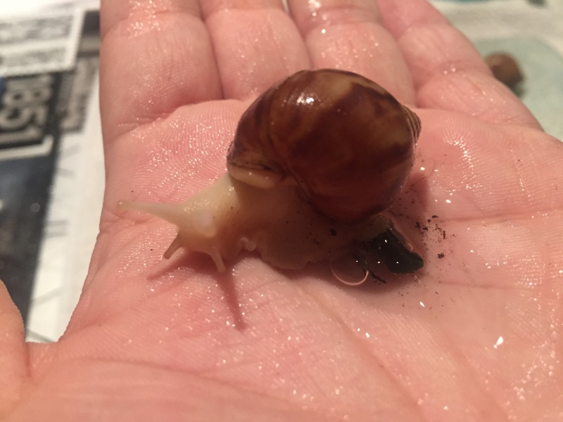 deine beiden Schnecken sind mit ziemlich hoher Wahrscheinlichkeit Achatina fulica. Sie haben beide ordentliche Wachstumsfehler am Häuschen... kann es sein, dass sie zuvor auf echt engem Raum mit vielen anderen Tieren gelebt haben? Es gibt auch andere Gründe für diese Art von Gehäuseschaden, aber oft knabbern sich die Tiere aus "stress" den frisch gebildeten Wachstumsrand ab. Es könnte aber auch beispielsweise was bakterielles sein.