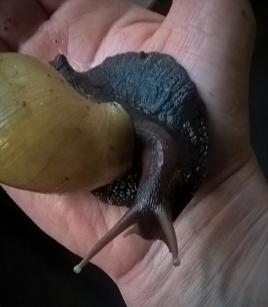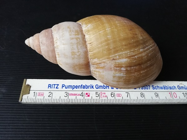 Ich hatte mir Achatina fulica caramellfarben bestellt. Als sie ankamen machten sie einen sehr guten Eindruck, starben aber in kürzester Zeit nacheinander weg ohne daß ich einen Grund entdecken konnte. Alle meine anderen A.fulica sind/ waren munter und gesund; es lag also nicht an der Haltung- zumindest nicht wissentlich. Ein Tier aus der gekauften Fünfergruppe hatte wohl noch Eier gelegt und die Nachkommen daraus ergaben ein buntes Sammelsurium- ich hatte aus dem Gelege fünf Tiere auf gut Glück ausgesucht und aufgezogen: drei "Rodatzii" (eine davon rötlichbraun mit leichtem Aalstrich, eine mit dunkelgrau- braunem Fuß) und zwei "Albino". Ich hab die Bezeichnungen in Gänsefüßchen gesetzt, weil so richtig eindeutig waren die Farben meist nicht. Alle Schnecken und ihre Nachkommen bleiben aber klein.