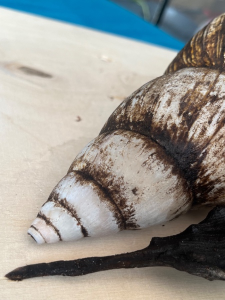 ich bräuchte die Expertenhilfe von euch um die genaue art meiner neuen Mitbewohner zu bestimmen. Ich hab sie aus dem Kindergarten meiner Mutter adoptiert, die wissen leider nicht um welche art es sich genau handelt. Sie kamen beide von einer Familie deren Schnecken babies bekommen haben, sie sind also Geschwister (wenn man das bei Schnecken so sagen kann). Leider sind bei beiden die hinteren enden der Häuser abgebrochen und die Farbe des Hauses etwas abgeschliffen. Ich hab eine eben sauber gemacht und Fotos aufgenommen.