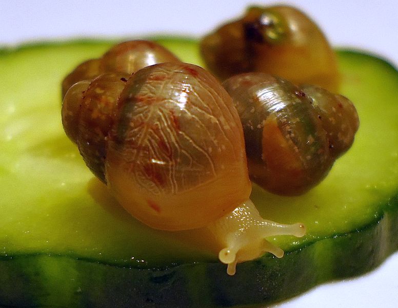 Ich bekam kürzlich einige Schneckenbabys, es war nicht ganz klar, um welche Art es sich handelt, die Elterntiere sollten aber wie recht kleine fulica mit sehr hellem Körper aussehen.