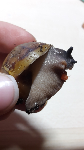 ich würde aufgrund der Form und (soweit ersichtlich) der Färbung auch eher auf eine Archachatina-Art tippen. Allerdings sind die Fotos nicht wirklich für eine Bestimmung geeignet, kannst du nochmal besser ausgeleuchtete Fotos machen?