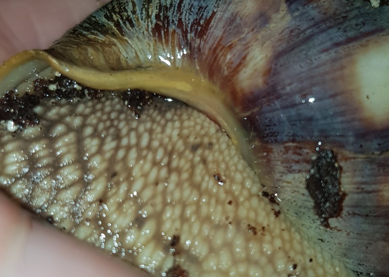 Die Columella ist teilweise rötlich, zusammen mit den anderen Merkmalen lässt sich das Tier in keine der bisher festgehaltenen Unterarten einordnen. Daher muss sie Archachatina marginata ssp. bleiben. Das gibt es ziemlich oft (eigentlich ist es sogar meistens der Fall, dass sich die Tiere nicht eindeutig zuordnen lassen, mit der clenchi war das echt Glück), ich sehe das bei den "kleinen" marginata-Arten inzwischen nicht mehr so eng mit dem Zusammenhalten, da es eben seltenst möglich ist, die Tiere einer Unterart zuzuordnen.