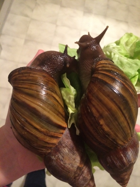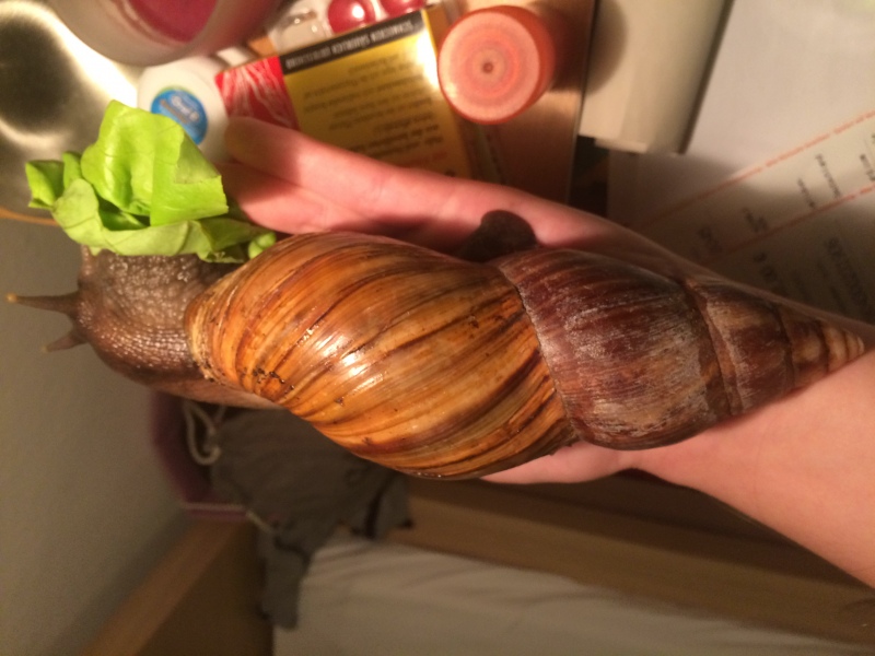 - Gehäuse: 18cm lang, in verschiedenen Brauntönen gestreift, allerdings hatte es auch grünlich, gelbliche Färbungen als sie noch ein Jungtier war