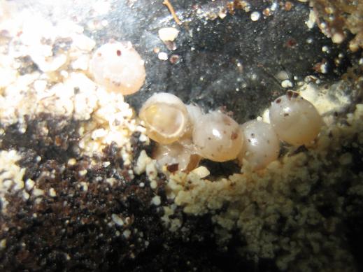 Die geschlüpften Schnecken sind ca. 1 mm klein