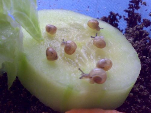 Anfangs hatte ich sie in einer Heimchendose mit im Weinbergschnecken-Terrarium bei Zimmertemperatur, dort sind sie zwar gewachsen und waren munter, einen richtigen Wachstumsschub machten sie allerdings als ich sie probeweise in einer Faunabox in´s beheizte fulica-Becken gesetzt habe.