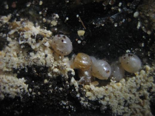 Die geschlüpften Schnecken sind ca. 1 mm klein