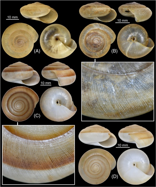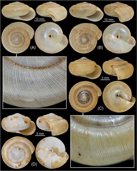 Traditional shell-based taxonomic placement has largely remained hypothetical awaiting confirmation from additional sources of evidence. In particular, the genital characters can distinguish taxa at both the generic and specific levels and are known to reflect their evolutionary positions more accurately than shell traits do (Hirano et al., 2014; Hyman et al., 2017; Köhler & Criscione, 2015; Pholyotha et al., 2020c, 2021; Jirapatrasilp et al., 2021; Sutcharit et al., 2021). In addition, molecular methods of species delineation have been widely and successfully used to clarify the evolution of land snails (Hyman et al., 2017; Liew et al., 2009; Köhler & Criscione, 2015; Hyman & Köhler, 2018), including otherwise ambiguous species.