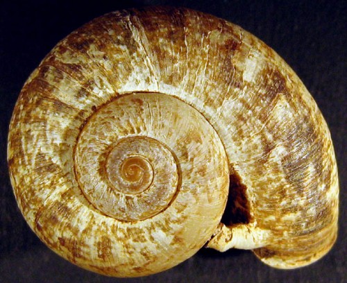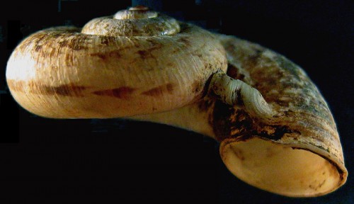 Die Ablösung der Endwindung kann bei Rhiostoma-Arten noch deutlich ausgeprägter sein als bei der oben abgebildeten Art. Unten folgt eine Abbildung von Rhiostoma cf. smithi BARTSCH, 1932 (Thailand, Provinz Krabi, Tham Wat Sai Thai; Totfund).