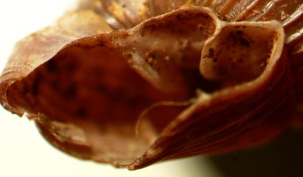 Ups, da hab ich mich wohl falsch ausgedrückt. Die Falten, die ich meine, sind so tief drin, dass man sie von vorn sowieso nicht sieht. Normalerweise fotografiert man die Schnecke deshalb von hinten. Bei frischen Schalen kann man dann häufig die Falten durch das Gehäuse durchschimmern sehen. Man kann auch nachhelfen indem man die Schalen nass macht oder wenn man starkes Licht von der Seite hat.
