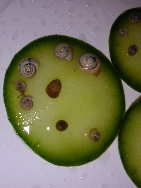 So, kleine Änderung, die Schnecks sind jetzt rausgekommen, Gurke und Wasser helfen da ganz gut