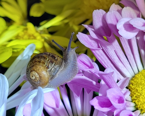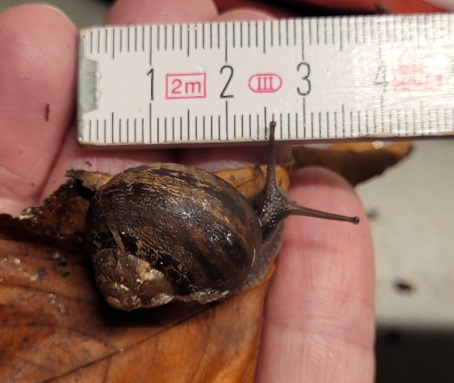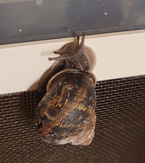 Er ist dann in meine Schnecken-Winter-Pflegebox eingezogen, zusammen mit kleinen Weini- und Bänderbabys, einer Bänderschnecke mit kleinerem Gehäuseschaden und später auch noch mit Klärchen.....