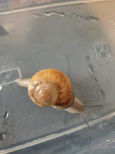 vor ein paar Wochen habe ich in gekauften Radieschen aus Italien diese Schnecke gefunden. Sie macht sich trotz kleiner Verletzung am Haus ganz gut und ist sehr munter, frisst versch. Blätter u. Gurke, Sepiaschale und badet auch. Leider habe ich keine Artgenossen für sie. Sie hat einen ziemlichen Freiheitsdrang und lange kann und möchte ich sie nicht mehr allein halten. Kann mir jemand bei der Bestimmung helfen?