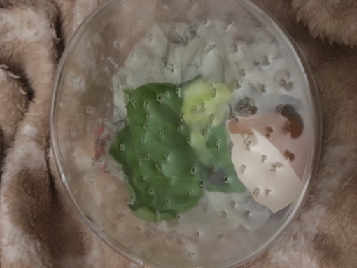 Sie ist sehr aktiv wobei sie jetzt gar nicht mehr aktiv ist und sich in ihr Haus verkrochen hat. Zudem habe ich bemerkt dass ihr Haus anscheinend ein bisschen kaputt ist!
