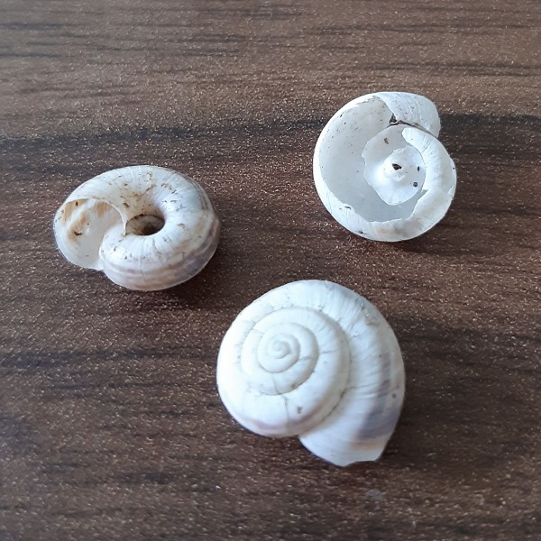 Ich war den Tag mit meinem Freund spazieren und fand auf einer recht kargen Wiese viele kleine Schnecken, von denen ich nicht weiß, was sie sind. Sie sind ca 1 cm groß, besitzen ein leicht durchsichtiges helles Gehäuse mit unregelmäßigen dunklem Muster (manche haben kein Muster, manche haben Punkte, manche haben Streifen), ca 5 Windungen und einen hellen Körper. Ach, und die Mündung ist auch bei allen hell. Auf manchen Gehäusen befindet sich eine interessante netzartige Struktur.