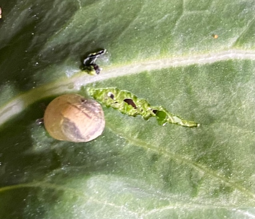 hm also bei den ganz kleinen 2,3 tages babies meinte ich fraßspuren in form von „nadelstichen“ am salatbatt erkannt zu haben. das 2wochen-grunzgeschöpf hinterlässt am kohlrabiblatt schon zwar kleine, aber richtige/sichtbare löcher.