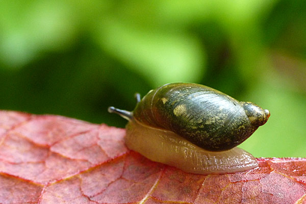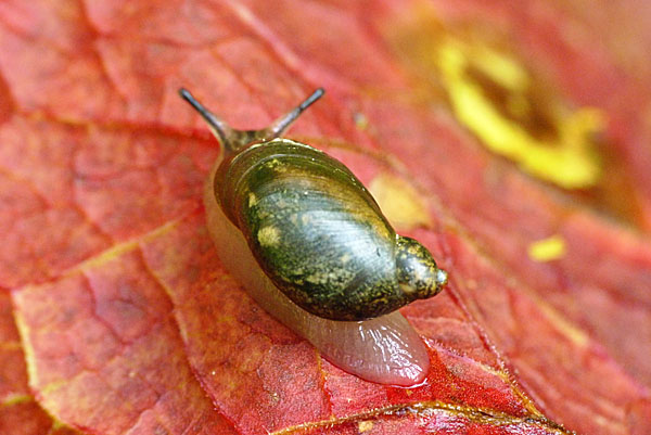 ... habe eine solche zum ersten Mal gesehen, zumindest in dieser Größe, in winzig meint man die ja öfter zu sehen. Sie saß sehr fotogen auf einem roten Blatt und hatte ein ca. 1-1,5 cm langes Häuschen. Zum Glück sind die Viecher nicht so schnell, so daß ich noch in Ruhe die Macrolinse vorschrauben konnte...