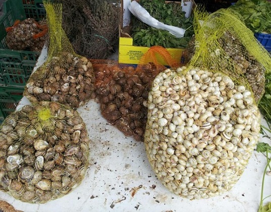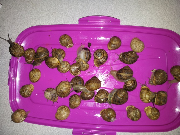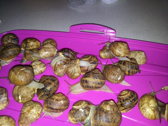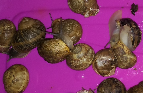 Auf die Gefahr hin totalen Unsinn zu erzählen würde ich meinen, dass die untere Schnecke mit dem flacheren Gehäuse eine Eobania sein könnte und die darüber mit dem spitzeren Haus eine Cornu aspersum.
