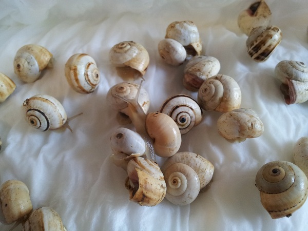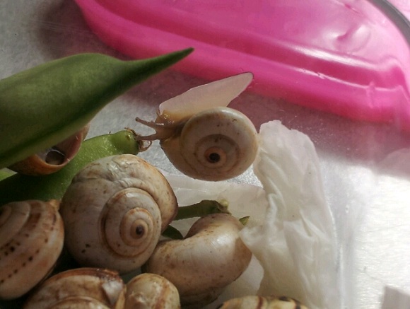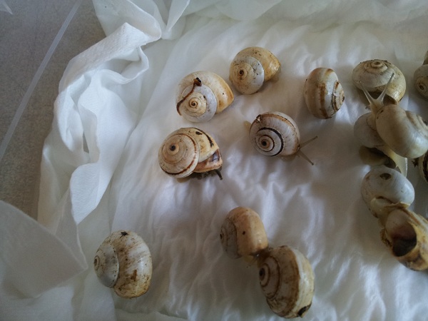Die Theba pisana sind bis auf zwei Exemplare, die sich nicht rühren (da bin ich mir nicht sicher, ob sie noch leben) wohlauf, die Sphincterochila candidissima sind allesamt fit und die Sombrero-Schnecke (eventuell Pseudotachea splendida) hat sogar einen dicken Wachstumsrand zugelegt.