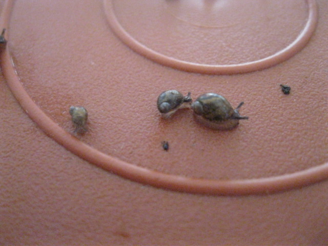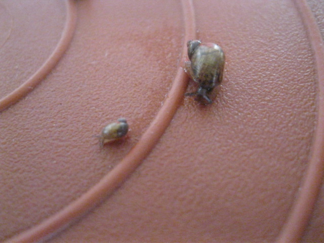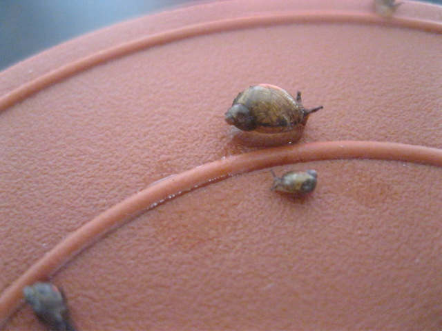 Hallo liebe Fories, nun brauch ich auch mal Hilfe von den erfahrenen Usern hier zwecks Findlingen. Ich habe gestern eine Feigenpflanze gekauft, laut Deklaration kommt die Pflanze aus den Niederlanden. An den Blättern und im Wurzelballen fand ich diese achtköpfige Schneckenfamilie, ich hoffe Ihr seht was, habe schon alles aus der Kamera geholt, was ging. Das Gehäuse ist bräunlich mit dunklen Flecken am Apex, der Weichkörper ist bei den Kleineren fast durchsichtig, bei den Größeren ist die Sohle hell, der Kopf eher dunkel. Die Kleinsten sind kleiner als einen Millimeter, die Größte ca 5 mm.