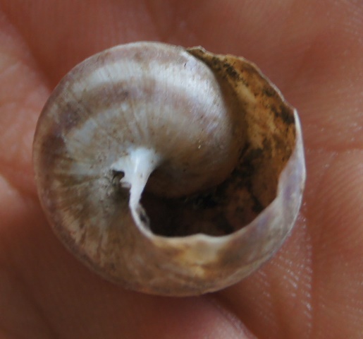 Dann habe ich noch eine recht große Gehäuseschnecke gefunden, die mir sehr sonderbar vorkam. Sie ist so groß wie eine kleine Weinbergschnecke, aber ziemlich flach. Das Gehäuse ist recht verwittert. Zu erkennen ist eigentlich nur ein dünner brauner Streifen, der sich auf dem Gehäuse der Länge nach erstreckt. Bilder kommen noch.