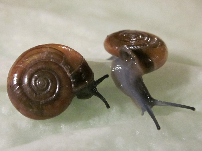 Ich finde da diese Glanzschnecken, braune, beige und schwarze Nacktschnecken, und Tigerschnegel.