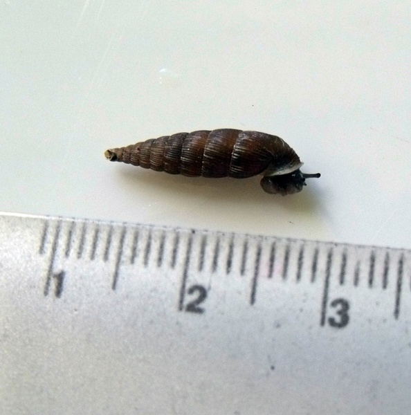 gestern habe ich bei mir auf Arbeit an der Außenseite eines Fensters eine (vermutlich) Bauchige Schließmundschnecke (Macrogastra ventricosa) gefunden.