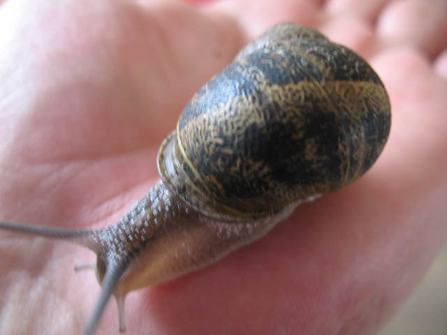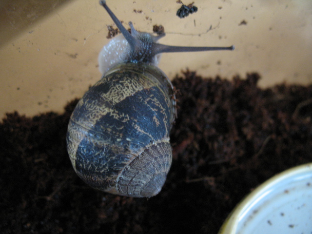Gestern haben meine Tochter und ich die Bänderschnecken, die ein paar Wochen bei uns gewohnt haben ausgesetzt. Dabei ist mir diese Schnecke aufgefallen. Laut meiner Tochter hat sie im Blumenkübel vor unserer Haustür gesessen. Weiß nicht ob das eine nur große Bänderschnecke oder etwas anderes ist. Weiß jemand eventuell was das für eine Schnecke ist