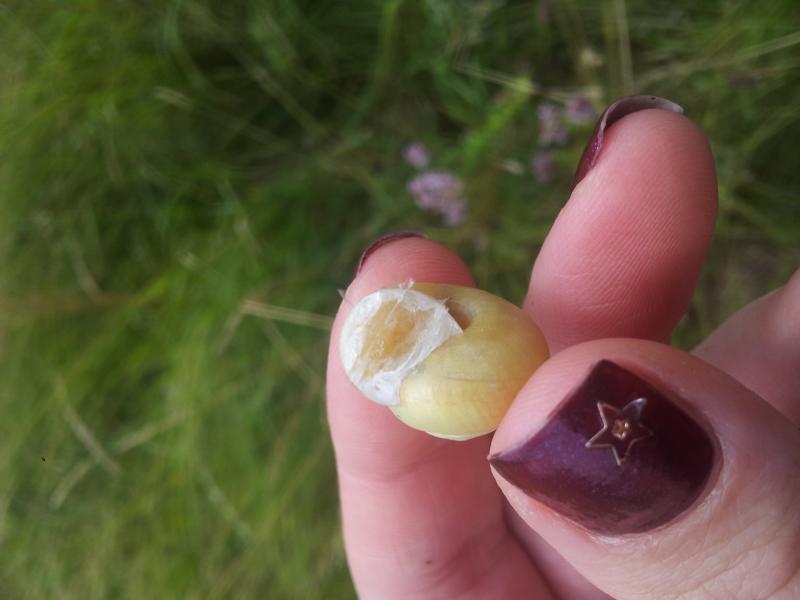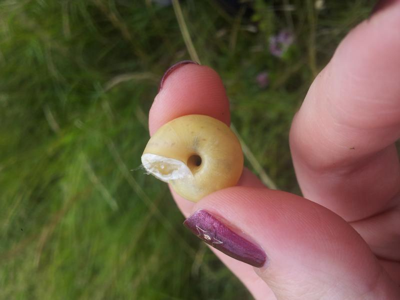 Hier noch ein Foto von einer der Schnecken, von der ich nur dieses eine deutlichere Foto habe. Ob sie wohl zur gleichen Art gehört, wie die leeren Häuschen?