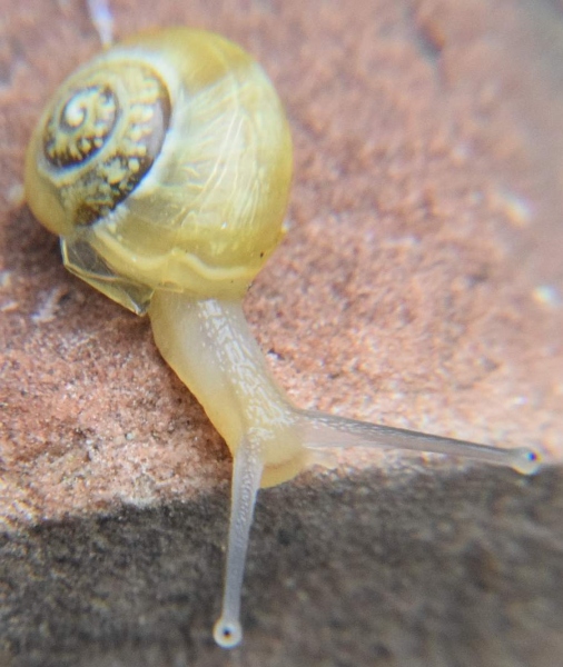 diese hübsche kleine Schnecke habe ich heute in der Nähe der Wassertonne gefunden. Kann sie bestimmt werden?
