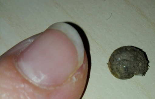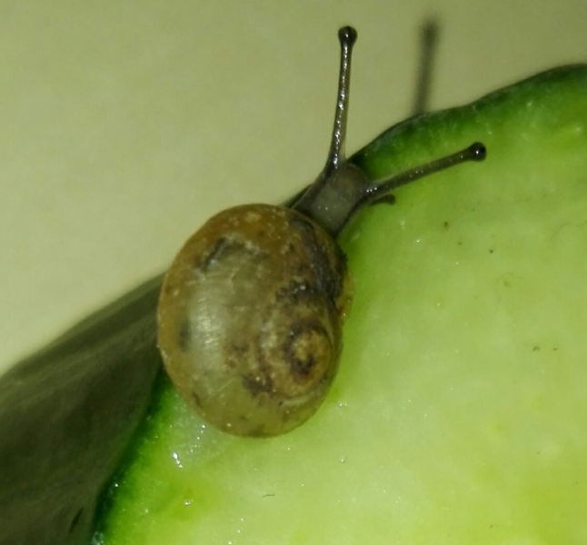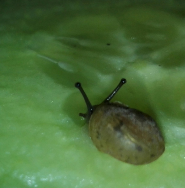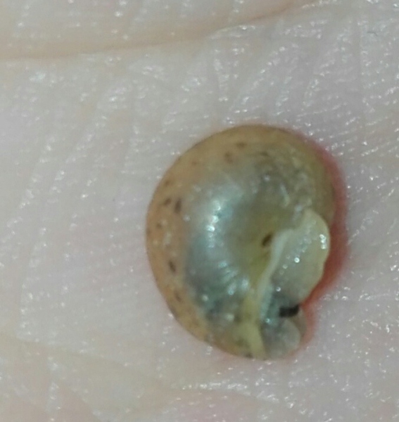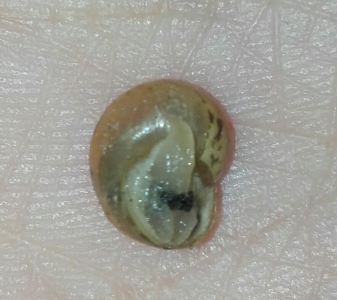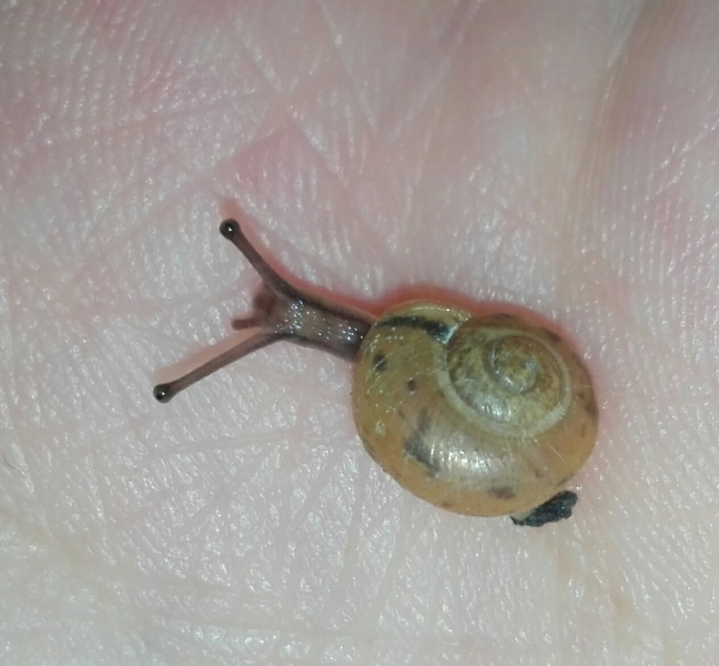 Möglicherweise ist die Kleine ja auch keins von beidem. Die Flecken auf dem Häuschen erinnern mich nämlich vage an das Muster einer Strauchschnecke. Aber da sie ihr Häuschen so schön mit Schlamm getarnt hat, lässt sich dazu letztlich überhaupt keine Aussage treffen Außerdem müsste man für eine nähere Bestimmung noch den Nabel, also die andere Seite des Häuschens, begutachten.