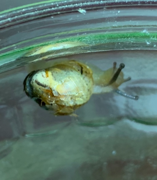 Ich schau mal ob ich ein flacheres Behältnis finde. Im Glas liegen zwar unten Karottenschalen zum polstern und drüber das Küchenpapier, aber wenn Schnecki mit losem Häuschen runterpurzelt kann das nicht guttun.