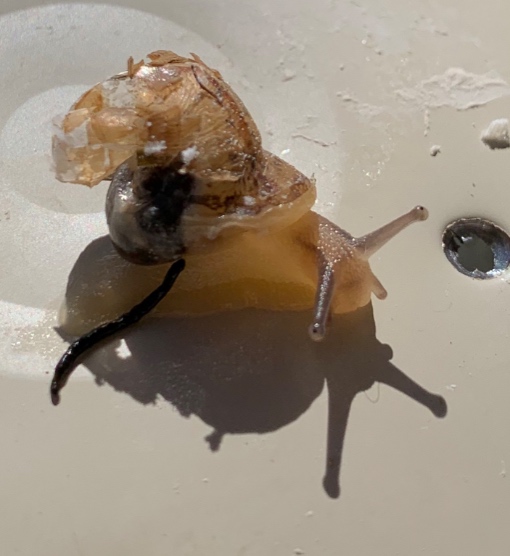 Sisco hat geschrieben:Danke euch beiden. Heilerdeschlammbad ist jetzt auch drin, aber Schnecki schneckt lieber am Deckel des Glases rum. Häuschen fixieren wird schwierig, da hinten unten noch teilweise intakt ist und ich befürchte, ihm damit mehr zu schaden. Ob innere Organe verletzt sin kann ich nicht erkennen, dazu ist es einfach zu winzig und ich weiss auch nicht, wie es unter dem Häuschen auszusehen hat