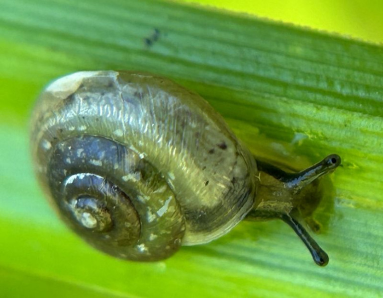 diese kleine Schnecke fand ich auf einem Blatt von Carex pseudocyperus am Gartenteich.