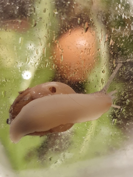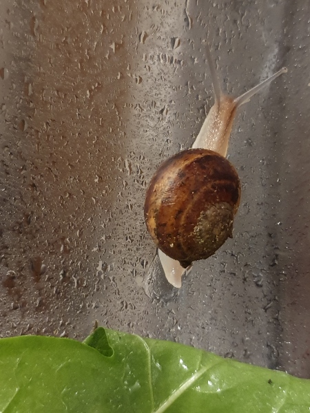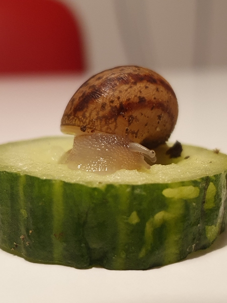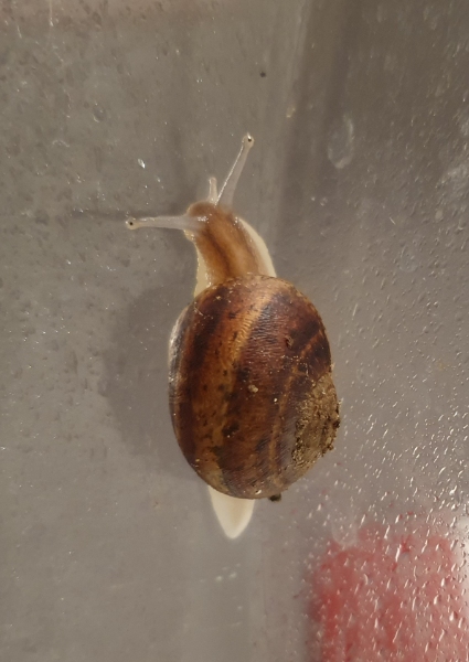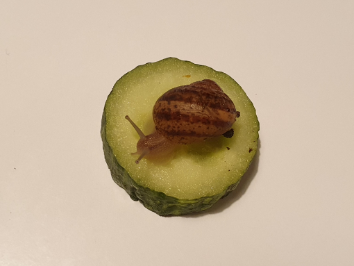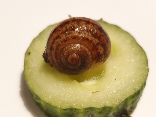 ich hätte noch Nudelschnecke (Divertikelschnecke, Eobania vermiculata) im Kopf Kannst du nochmal ein Foto von näher dran machen (wo man die Textur des Weichkörpers sieht)? Woher hast du sie denn?