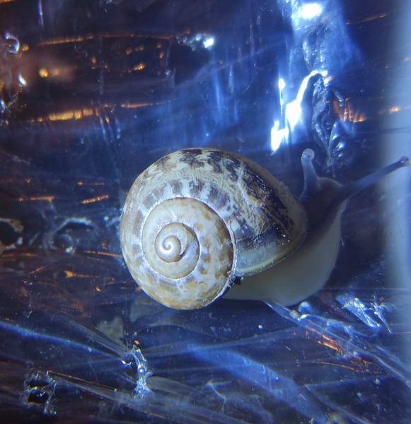 Ich habe heute eine kleine Schnecke kurz vor meinem Haus in der Nähe des Rheinufers an einer Steinwand gefunden. Sie ist ca. 7-8mm groß, hat ein dunkelbraunes Haus und einen weißen Strich. Allgemein sieht sie fast aus wie eine junge Weinbergschnecke, was mich allerdings irritiert ist, dass ihr Haus so flach ist und genau dort, wo der weiße Strich ist, eine markante Kante besitzt. Ich selbst habe schon mehrere Weinbergschnecken (Cornu aspersum) aufgezogen, bei denen ist mir das noch nie aufgefallen.