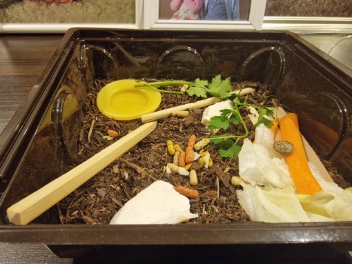 Ich vermute es könnte eine "Nudelschnecke" sein und habe sie daher vorerst in einer belüfteten Dose mit ihrer Petersilie untergebracht.