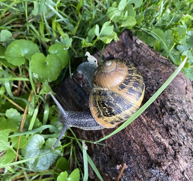 Die „Cornu aspersum“ wirkt auf mich ungewohnt fleckig (jaaa, ich weiß: Gefleckte Weinbergschnecke). Die meisten Jungtiere hier im Garten haben ein eher streifiges Muster.
