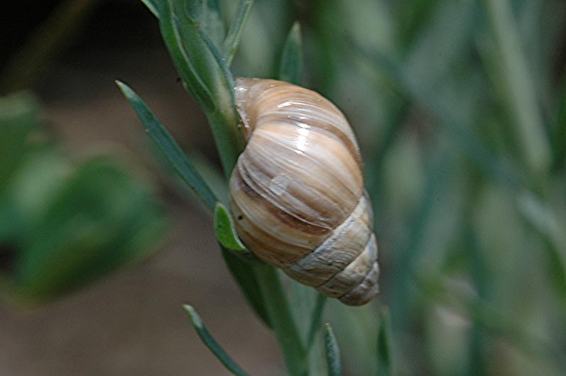 an einem extrem trockenen Hang direkt an der Straße, Südumgehung Winnenden, saß am 2.5.2009 diese Schnecke an Lein und Kleinem Wiesenknopf.