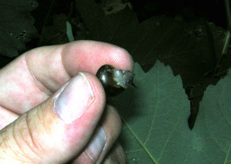 Cepaea hortensis? Könnte sein, aber dazu sieht sie mir eigentlich zu einfarbig braun aus. Arianta arbustorum? Ich konnte keinerlei Nabel erkennen. Also doch erstere Art? oder noch was anderes?