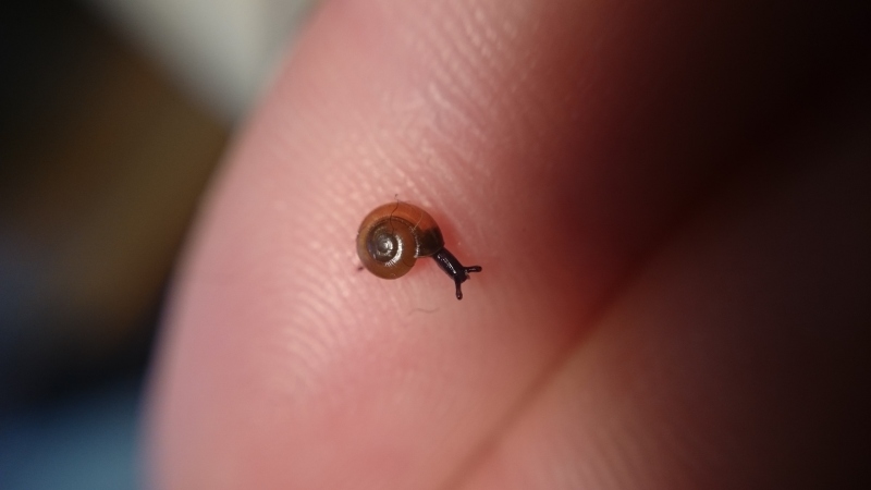 heute habe ich eine winzige Schnecke in meinem Wurmcafé gefunden.