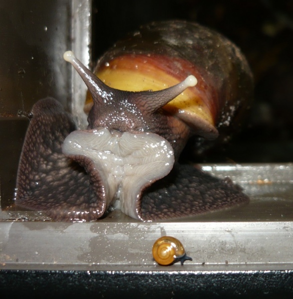 Allerdings bei den anderen Schnecken im Terrarium würde ich sie nicht unbedingt lassen - manche Glanzschneckenarten ernähren sich räuberisch (unter anderem auch von anderen Schnecken, habe auch Berichte gelesen, dass sie nicht nur den Kleinen gefährlich werden, sondern auch bei großen Schnecken ins Atemloch gehen...), ich kenne mich da aber nicht so gut aus um sagen zu können welche. Würde es einfach nicht riskieren.