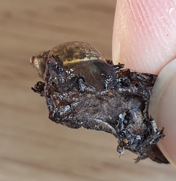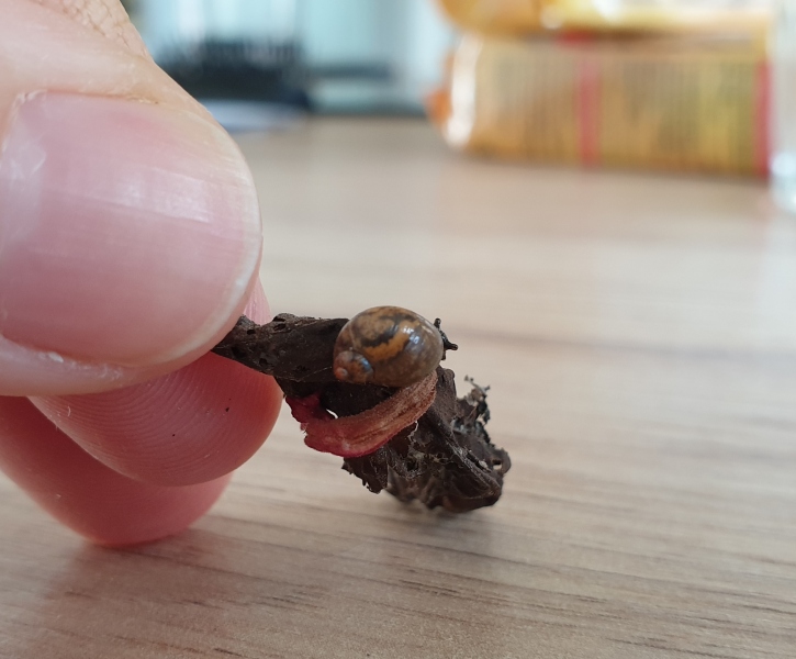 Ich habe heute eine Mini Schnecke in einem Kräutertopf gefunden. Die Kleine ist putzmunter und wahrscheinlich schon auf der Pflanze, seit ich diese vor ca zwei Wochen in der Gärtnerei gekauft habe. Sie sieht den mir bekannten einheimischen Arten nicht ähnlich (ich habe aber auch nur rudimentäre Kenntnisse über Schnecken). Die Pflanze scheint laut Pflanzenschild aus Italien zu kommen, daher meine Vermutung, das Schneckchen ist Italiener. Bei diesen Temperaturen geht sie in Garten sicher ein und ich bin mir auch nicht sicher, ob das überhaupt der richtige Umgang mit einer fremden Art wäre. Hab sie jetzt erstmal in ein Glasgefäß gesetzt und etwas Grünzeug dazu. Hab versucht, die Kleine bestmöglichst zu fotografieren.
