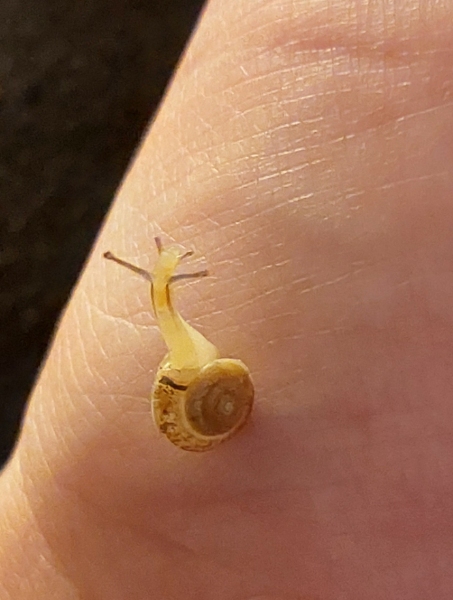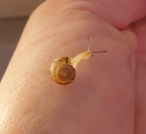 Hm, sie ist auf den Bildern nicht so richtig gut zu erkennen... von der Häuschenform her würde ich mal auf eine junge Weinbergschnecke tippen.