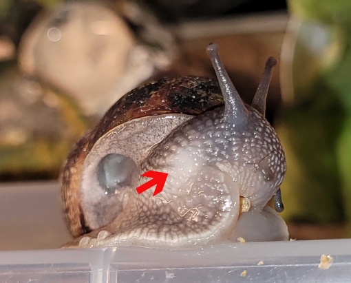 Das Schneckchen hat sich den ganzen Nachmittag sehr rar gemacht, aber eben konnte ich 2 Fühlerchen im Kalkbad sehen.