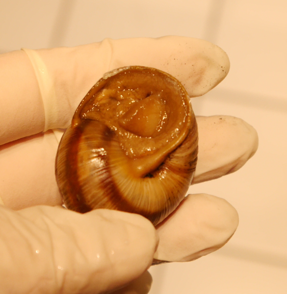 Die Dosierung war ein grosses Problem, aber die Schnecke hat es gut überstanden.